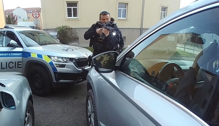 Po zajištění muže hlídka prohledala vozidlo, zda se uvnitř nenachází údajné zbraně. Po řádné prohlídce automobilu policisté zajistili slzné spreje, obušek, nůž a kladivo. Žádná střelná zbraň se uvnitř vozu nenacházela.